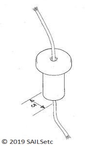 Fairlead to fit a 3 mm internal Ø hole or tube. The hole is 0.8 mm diameter making it suitable for 50 kg Dyneema ref D50 and lower breaking strain lines as would be used on 65 Class, Footy or similar small boats.